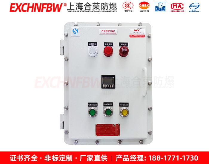 2. 本產品為改進型防爆產品,內部可裝防爆按鈕、防爆指示燈、防爆電流表、防爆開關、防爆電壓表等各種儀表和控制需要的部分;