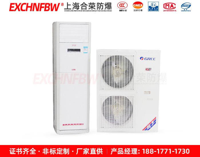 是根據GB3836.1-2000《氣體環境用電氣設備第1部分:通用要求》、GB3836.2-2000《氣體環境用電氣設備第2部分:隔爆型“d”》、GB3836.4-2000《氣體環境用電氣設備第4部分:本質安全型“i”》及GB3836.9-90《環境用防爆電氣設備澆封型電氣設備“m”》的規定將室內或室外機組(或室內外機組全部)制成防爆結構,經國家授權的質量監督檢驗部門檢驗合格。本空調機主要適用于工廠存在或可能存在ⅡA、ⅡB、ⅡC類,T1~T4組可燃性氣體、蒸氣與空氣混合形成的危險場所。
