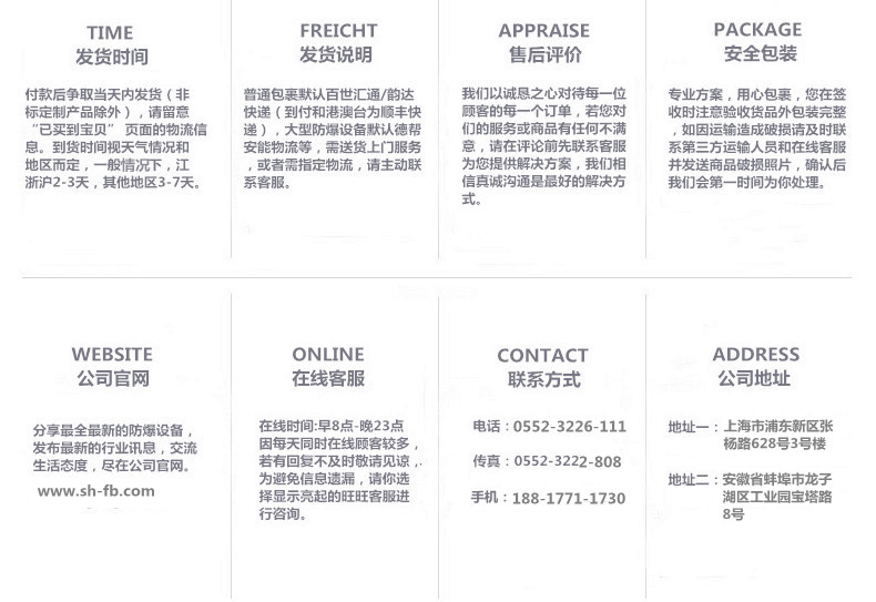地址:中國 · 安徽省蚌埠市淮上區(qū)盛華路285號 E-mail:1076086962@qq.com 關(guān)鍵詞:防爆配電箱 防爆控制箱 防爆箱 防爆配電柜