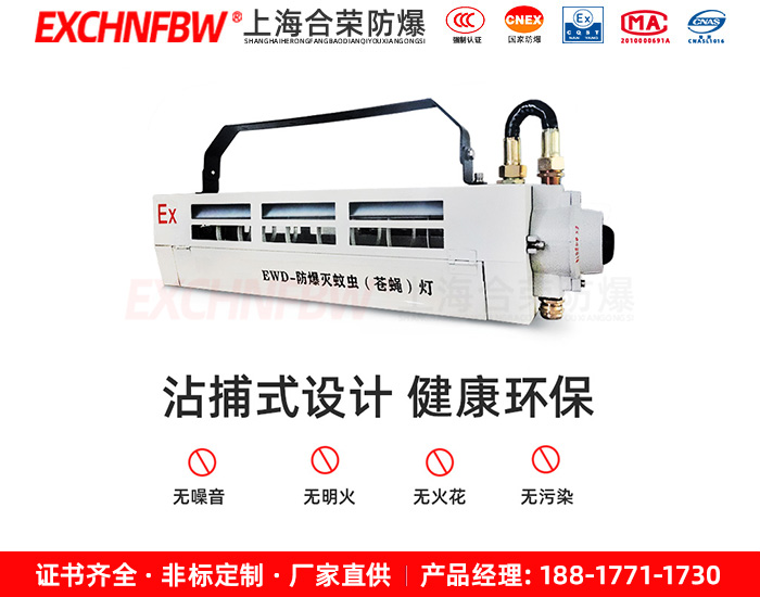 5,使用安全、無明火,無高壓.本產品有別與傳統依靠高壓電網滅殺蚊蟲,不會在滅蚊時產生火花, 誘蚊燈管經過防爆處理, 特別適合防火要求比較高的工業使用和要求防爆的工業使用。