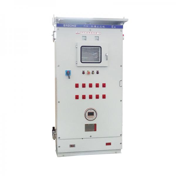 通過向柜內持續通入一定壓力的清潔壓縮空氣,使柜內壓力高于外部環境壓力,從而阻止外部爆炸性氣體、粉塵等進入柜內,實現防爆功能。