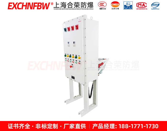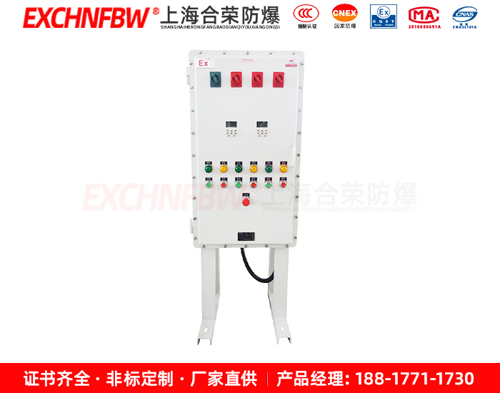 █ A、外殼采用鑄鋁合金壓鑄成型,表面噴塑。主腔采用隔爆型結構,接線腔增安型結構。內可選配裝斷路器、交流接觸器、熱繼電 器、變壓器、熔斷器、溫控 儀數顯表等普通低壓元件。Ex防爆控制按鈕、信號燈、轉換開關等。配電箱采用模塊化設計,各種回路可以自由組合,電器元件選型可 由用戶而定,其結構緊 湊、外形美觀。進出線采用鋼管或電纜布線均可,進出線口方向可由用戶要求而定。